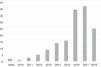 The mean number of downloads was 185 035. Fig. 1 presents the app launch growth (number of apps/year), showing an increasing trend and a significant leap in 2016. Most apps were free (91.7%), and the mean price of the rest was 2.33 euro.