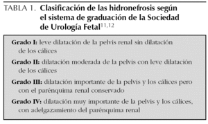 La hidronefrosis (HN) es la alteración detectada con mayor frecuencia en la ecografía prenatal1 (50 % de las lesiones que se encuentran), con una incidencia de un 1-2 % de todos los embarazos2-4. Aproximadamente el 50 % de ellas están ocasionadas por obstrucción de la unión pieloureteral1 y, en la actualidad, se recomienda seguimiento posnatal en todos aquellos fetos cuyo diámetro anteroposterior de la pelvis renal sea superior o igual a 5 mm en cualquier momento de la gestación5,6.