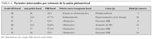 Cuando se reagruparon los grados de HN en "grupo 1", incluyendo las HN grados I y II, y "grupo 2", las HN grados III y IV, se apreció mediante la t de Student que existía una diferencia estadísticamente significativa (p < 0,05) entre las medidas de los milímetros de la pelvis de ambos grupos.
