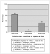 Como se aprecia gráficamente, las manifestaciones más frecuentes fueron el dolor a la defecación (37 casos, 60 %), rectorragia (26 casos, 42 %), dolor abdominal (24 casos, 39 %), episodios obstructivos (20 casos, 32 %) y fisuras y/o hemorroides (11 casos, 18 %). De 50 niños que controlaban los esfínteres la mitad no tenían ningún hábito higiénico. Respecto al comportamiento frente a la evacuación, 18 casos (29 %) manifestaron miedo ante la defecación y 5 casos (8 %) "prisa", por lo que realizaban evacuaciones incompletas. El tacto rectal constató ampolla llena en 45 casos (73 %). Encopresis se asoció en 19 casos (31 %). Al desglosar los pacientes en 2 grupos según fueran encopréticos o no, en el grupo que asociaba encopresis destacó claramente la impactación fecal (13 casos, 68 %) y la exclusión social (5 casos, 26 %) (fig. 1B).