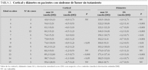 TABLA 2. Cortical y diámetro en pacientes con síndrome de Turner sin tratamiento