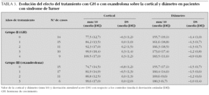 TABLA 3. Evolución del efecto del tratamiento con GH o con oxandrolona sobre la cortical y diámetro en pacientes con síndrome de Turner