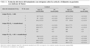 TABLA 4. Evolución del efecto del tratamiento con estrógenos sobre la cortical y el diámetro en pacientes con síndrome de Turner