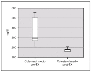 Figura 1. Cifras de colesterol antes y después del trasplante renal.