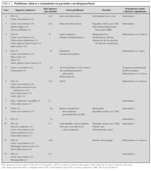 Se realizó un estudio descriptivo retrospectivo de los 23 episodios de STA en pacientes con drepanocitosis menores de 18 años atendidos en nuestro centro, el primero en septiembre de 1987 y el último en marzo de 2003. Los datos clínicos de todos los niños con drepanocitosis controlados en nuestro centro se exponen en las tablas 1 y 2.