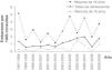 ResultadosSe obtuvo una muestra de 83 adolescentes (fig. 1), con una edad media de 16,6 años (DE: 1,2 años); 24 (28,9%) eran menores de 16 años. La figura 2 muestra la evolución del número de casos anuales de adolescentes que presentaron una prueba de embarazo positiva. La incidencia osciló entre 0,5 y 2,0 test positivos por 1.000 adolescentes y año, observándose una tendencia a aumentar en la segunda mitad del periodo de tiempo analizado (mediana de incidencia 0,7 vs. 1,6; p=0,05). El número de test positivos en menores de 16 años en el primer periodo fue de 7 y en el segundo de 17; su incidencia osciló entre 0 y 1,6 test positivos por 1.000 adolescentes y año, sin observarse diferencias significativas entre los dos periodos analizados. La figura 3 muestra la evolución al alza de la incidencia global y por grupo de edad en los 12 años de estudio.