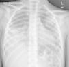 Varón de 6 años, nacido en España, familia de origen marroquí, y que había realizado el último viaje a Marruecos hacía 4 meses. Consultó por fiebre y tos de 4 días de evolución. A la exploración destacaba taquipnea y crepitantes en ambas bases pulmonares. En la radiografía de tórax se visualizaba un área condensativa con derrame pleural asociado en el lóbulo inferior derecho, y múltiples nódulos pulmonares bilaterales (fig. 1). Se realizaron pruebas de ecografía y tomografía axial computarizada toraco-abdominal, en las que se detectaron múltiples masas pulmonares bilaterales de densidad agua, uniloculares, una de ellas cavitada, con derrame pleural derecho (fig. 2) y 2 quistes simples hepáticos (fig. 3).