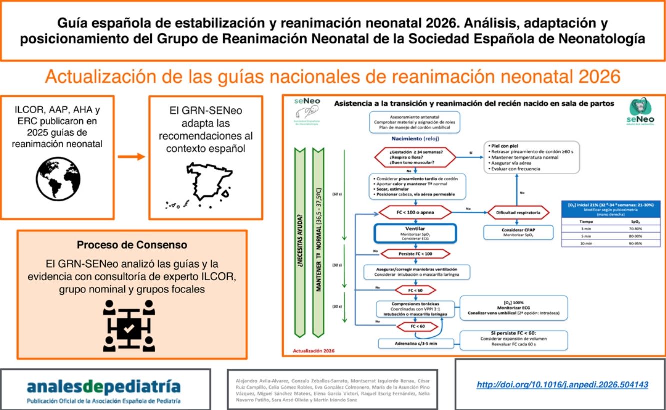 El comité de reanimación neonatal del International Liaison Committee on Resuscitation (ILCOR) publicó a finales del 20251, al mismo tiempo que la Academia Americana de Pediatría (AAP), la Academia Americana del Corazón (AHA)2 y el Consejo Europeo de Resucitación (ERC)3, las últimas recomendaciones en reanimación neonatal.