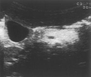 Se le realiza un hemograma y bioquímica básica en la que se objetiva una fórmula leucocitaria con linfocitosis y neutropenia (730/μl), así como una GOT de 110 y una GPT de 124, siendo el resto de parámetros normales. Se descarta hepatopatía por virus hepatotropos más habituales, déficit de a1-antitripsina, enfermedad de Wilson, fibrosis quística, trastornos metabólicos más frecuentes, patología hepática autoinmune, miopatía oculta y enfermedad celíaca. Se solicita una ecografía abdominal (fig. 1) en la que se observa una hepatomegalia homogénea y un aumento de ecogenicidad en páncreas. Ante la sospecha de SDS se solicita una elastasa pancreática: 52 μg/g de heces (insuficiencia grave 6,7), una serie ósea que se informa como normal y una tomografía computarizada abdominal (fig. 2) donde se objetiva una disminución difusa y homogénea de la atenuación del páncreas, que muestra un tamaño en los límites bajos de la normalidad; los hallazgos se relacionan con una infiltración grasa global de la glándula.