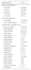 | HLA riesgo muy alto (%) | HLA riesgo alto (%) | HLA riesgo moderado (%) | Otros HLA (%) | p | |