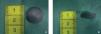 Figura 2. Visión frontal(A)y lateral (B)del cuerpo extraño extraído endoscópicamente. Plomada de pesca de superficie rugosa y forma semiesférica de 2 cm de diámetro y 0,5 cm de espesor máximo.