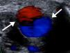 Tras 72h de vendaje compresivo, la tumoración presenta pulso, soplo, y en la ecografía se observa flujo anterógrado y retrógrado (signo del Yin-Yang1, fig. 2) en comunicación con la arteria humeral por un cuello de 2×2mm, hallazgos en relación con el seudoaneurisma permeable (fig. 3). Esto se interpretó como una recurrencia y fracaso de la compresión por instauración tardía.