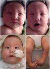 A y B) Recién nacido con parálisis facial bilateral en reposo (A) y durante el llanto (B): A) Se observa cierre incompleto de la comisura palpebral (lagoftalmos). B) La asimetría facial es evidente durante el llanto. Se observa la «cara en máscara» con conservación parcial de la musculatura facial inferior derecha (desviación de la comisura bucal homolateral). C) Mismo paciente de A y B a los 3 meses de vida, con sonda nasogástrica y cánula de traqueotomía. Se evidencia el estrabismo convergente y la implantación baja del pabellón auricular. D) Pie equino varo bilateral.