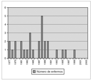Figura 1. Frecuencia anual de ingresos por meningitis tuberculosa.