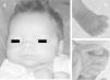 Exploración física y pruebas complementarias: peso, talla y perímetro craneal: < P5. La niña presenta polidactilia preaxial de ambos pies (6 dedos completos en ambos pies, a expensas de duplicación del primer dedo), sindactilia del 3.°-4.° de ambos pies, pulgares grandes y de implantación alta, frente amplia e hipertelorismo con raíz nasal ancha (distancias interpupilar e intercantal interna > 3 DS) (fig. 2). Hemograma y bioquímica, normales. Ecografía cerebral y abdominal, normales. Estudio cardiológico, normal.