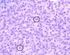 Con la sospecha clínica de NP frente a MMC sobre NMCG, realizamos una biopsia-extirpación de la lesión nodular. En ella, se observaba un fragmento cutáneo extensamente ulcerado (sobre la lesión se había colocado un apósito adhesivo, y al retirarlo, se produjo de forma iatrogénica dicha ulceración) con un nevus melanocítico intradérmico de hábito congénito que afectaba a los márgenes de resección. Ocupando toda la dermis y llegando focalmente al panículo adiposo, se observaba una proliferación nodular, densamente celular y con clara delimitación del nevus congénito subyacente, constituida por células melanocíticas monomorfas que no mostraban maduración en profundidad (fig. 3). Las células eran de tamaño mediano, más grandes que las del nevus y presentaban unos núcleos uniformes, ovoides y redondos, con frecuente presencia de un nucléolo central. Los citoplasmas eran eosinófilos, mal delimitados y algunos presentaban pigmento melánico. No se observó extensión pagetoide. Se encontraron hasta 5 mitosis por 10 campos de gran aumento, presentes a todos los niveles de la lesión, ninguna de ellas con morfología atípica (fig. 4). El caso se diagnosticó de NP sobre NMCG.