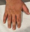 Niño de 14 años previamente sano, que presentó hinchazón indolora circunscrita a las articulaciones de la mano derecha de un año de duración. Sin antecedentes personales o familiares de interés. El examen físico reveló engrosamiento cutáneo sobre las articulaciones interfalángicas proximales y metacarpofalángicas (fig. 1). No había ningún otro signo inflamatorio. La evaluación de la fuerza muscular fue normal. En el momento de la consulta, el paciente practicaba judo y culturismo sin ninguna limitación. Informó que el inicio de las lesiones se asoció con un aumento en el uso de la PlayStation®. Los resultados de la analítica, incluyendo la velocidad de sedimentación globular y la proteína C reactiva, fueron normales, como lo fueron las radiografías de ambas manos (fig. 2). Se derivó al paciente a dermatología para descartar otras posibles condiciones. Se inició tratamiento con masajes localizados con un emoliente y reduciendo el uso de la PlayStation®. El paciente fue reevaluado cada año, observándose una mejoría progresiva de las lesiones.