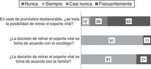 14. ¿La retirada del soporte vital se decide conjuntamente con el oncólogo?