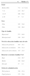 Valores perdidos: edad (2); sexo (2); tipo de familia (33); bienestar económico familiar (FAS, 18); nivel de educación (65); orden de administración (2).