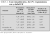 Las curvas COR determinaron un valor de corte de 2,40 nmol/ml, a partir del cual se consideró que los LPO estaban elevados (este valor es mayor que el promedio de los niveles de LPO obtenido en prematuros sanos, en un estudio previamente comunicado por nosotros 24 en el que se utilizó la misma técnica para la determinación de LPO).