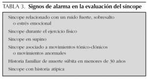 TABLA 3. Signos de alarma en la evaluación del síncope