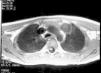 En la exploración física destacaba talla 143cm (+2,0 DE5); peso de 32,3kg (+0,2 DE5), botón mamario bilateral y estadio de Tanner8 A2P3G3-4 con volumen testicular de 4-5 cc. Con orientación diagnóstica inicial de pubertad precoz periférica, la edad ósea muestra un retraso de 2 años; en la analítica sanguínea destacan α-fetoproteína de 15,7μg/l (normal, < 15), sulfato de dehidroepiandrosterona < 0,78μmol/l (normal < 4,7), testosterona < 26 ng/dl (rango prepuberal) y β-coriogonadotropina 6,8 U/l (normal, < 0,8). El aumento de los valores de β-coriogonadotropina hace sospechar la existencia de carcinoma embrionario que se confirma mediante TC torácica, demostrándose una masa mediastínica de 2×2cm, sin otros hallazgos en el estudio de extensión, con indicación quirúrgica (fig. 2). Se realiza la resección de la masa sin incidencias, con anatomía patológica de teratoma maduro.