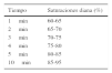Saturaciones diana durante la estabilización expresada en minutos después del nacimiento, de acuerdo con las recomendaciones del ILCOR 2015