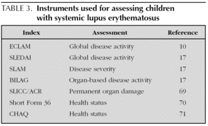 It may be challenging to distinguish active inflammation from symptoms due to cumulative organ damage or medication side effects. A thorough history and physical examination, including all major systems, must be undertaken at each clinic visit (table 2). An assessment of disease activity is crucial for undertaking most treatment decisions. Several activity indices have been validated and are depicted in table 3.