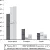 Applying the BMI categories established by the modified 2000 Cole/2007 WHO criteria, we found a prevalence of 11.8% for overweight and of 11.8% for obesity, that is, a prevalence of excess weight of 23.6%. When we applied the BMI categories of the Spanish Ministry of Health,16 we found a prevalence of overweight of 6.6% and a prevalence of obesity of 18.4% (excess weight, 25%) (Fig. 1).