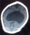A su ingreso en la Unidad de alto riesgo neonatal, en regulares condiciones generales, presentaba los siguientes signos vitales: la frecuencia cardiaca era de 140 lpm y la respiratoria de 56rpm, con moderada palidez mucocutánea y microcefalia, con perímetro cefálico de 29cm; la fontanela anterior puntiforme depresible, microftalmia con hipotelorismo ocular, labio-paladar hendido amplio en todo su trayecto medial, micrognatia, los pabellones auriculares de implantación baja, el cuello es corto y pectus excavatum (fig. 1). La auscultación cardiopulmonar con soplo sistólico y murmullo vesicular rudo. En el abdomen cordón umbilical con arteria única y genitales de configuración normal. No se mostró alteración en las extremidades. El examen neurológico presentó reflejos primitivos. La ecografía transfontanelar no apreció línea media ni circunvoluciones cerebrales, ausencia de cuerpo calloso y septum pellucidum; los tálamos se encuentran fusionados y monoventrículo, compatible con holoprosencefalia alobar. El estudio de tomografía axial cerebral confirmó el diagnóstico (fig. 2). El estudio de ecocardiografía evidenció ducto arterioso persistente. El cariotipo en sangre periférica 46, XX/47,XX+13, metafases estudiadas 40, con 17,5% de células trisómicas.
