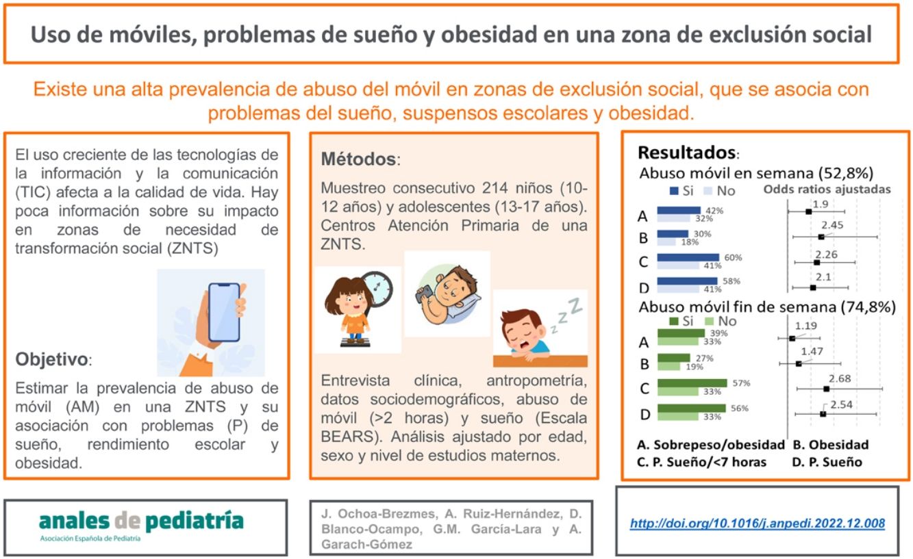 ConclusionsThe prevalence of mobile phone overuse is high in areas of social exclusion and is associated with sleep disorders, school failure, and obesity.