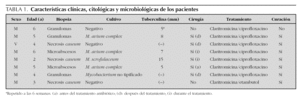 Los datos clínicos, microbiológicos y terapéuticos de los pacientes quedan resumidos en la tabla 1.