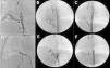 Pre- and post-occlusion angiographs of the feeding vessels of pulmonary sequestration.